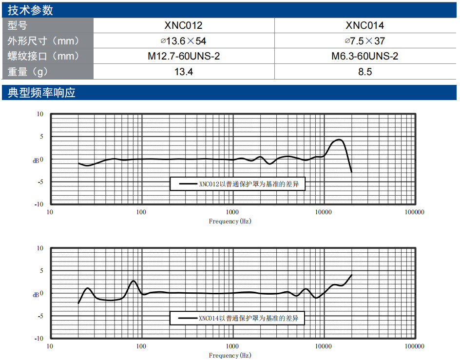 XNC012/XNC014 传声器鼻锥专为在强风中使用1/2英寸传声器/1/4英寸传声器进行噪声测试而设计,主要用于降低气流引起的噪声。使用时需要用本产品取代传声器的常规保护格栅,一方面避免气流直接作用到膜片上,另一方面锥状体也降低传声器在声场中引起的噪音。声压通过鼻锥下方的细金属丝网作用到传声器振膜,而网孔后面腔体设计也尽量减少振膜前面的空气量。